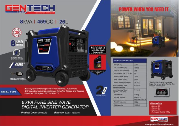 Be the first to review “Gentech Power 8 KVA Digital Pure Sine Wave Inverter Petrol Generator” Cancel reply